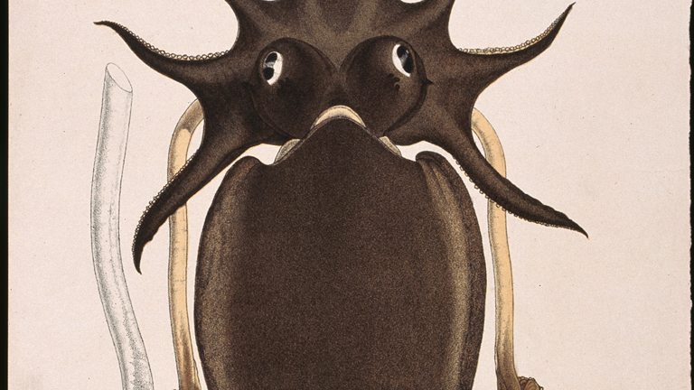 Consequently the Prodromus of Zoology includes only four species of living molluscs. All cephalopods, they were the Paper Nautilus, the Southern Calamari, the Giant Cuttlefish and the Arrow Squid. Unpublished plates revealed another Giant Cuttlefish series, featuring a smaller and somewhat fresher specimen. While few species were illustrated, McCoy and his artists were clearly interested in cephalopods, dedicating multiple individual plates to each species.