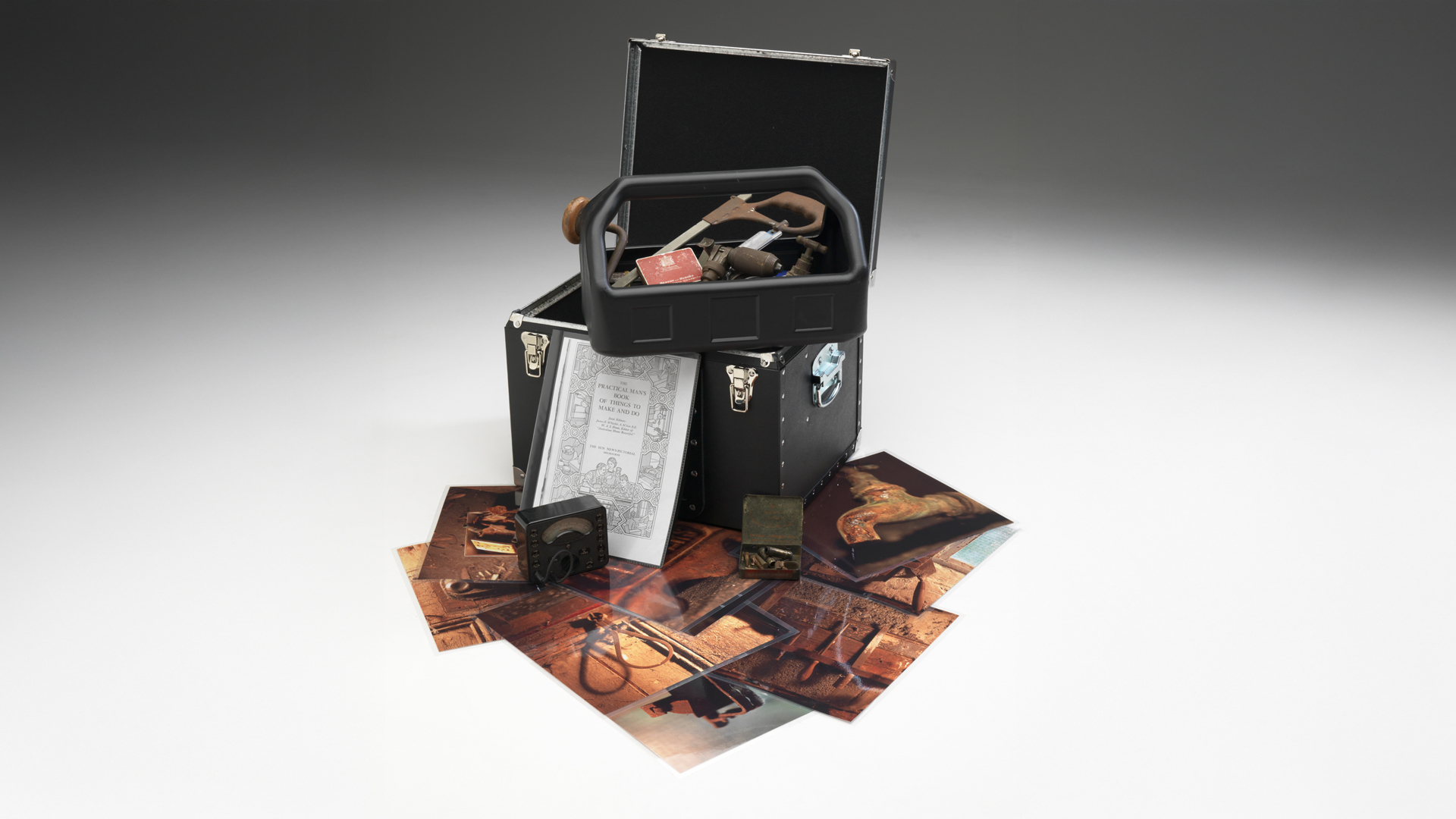 The kit includes a selection of items from the 1930s to 1960s, including a representative sample of tools from Museums Victoria’s extensive Social History collection, a folder of laminated photographs, sports commentary, and music.