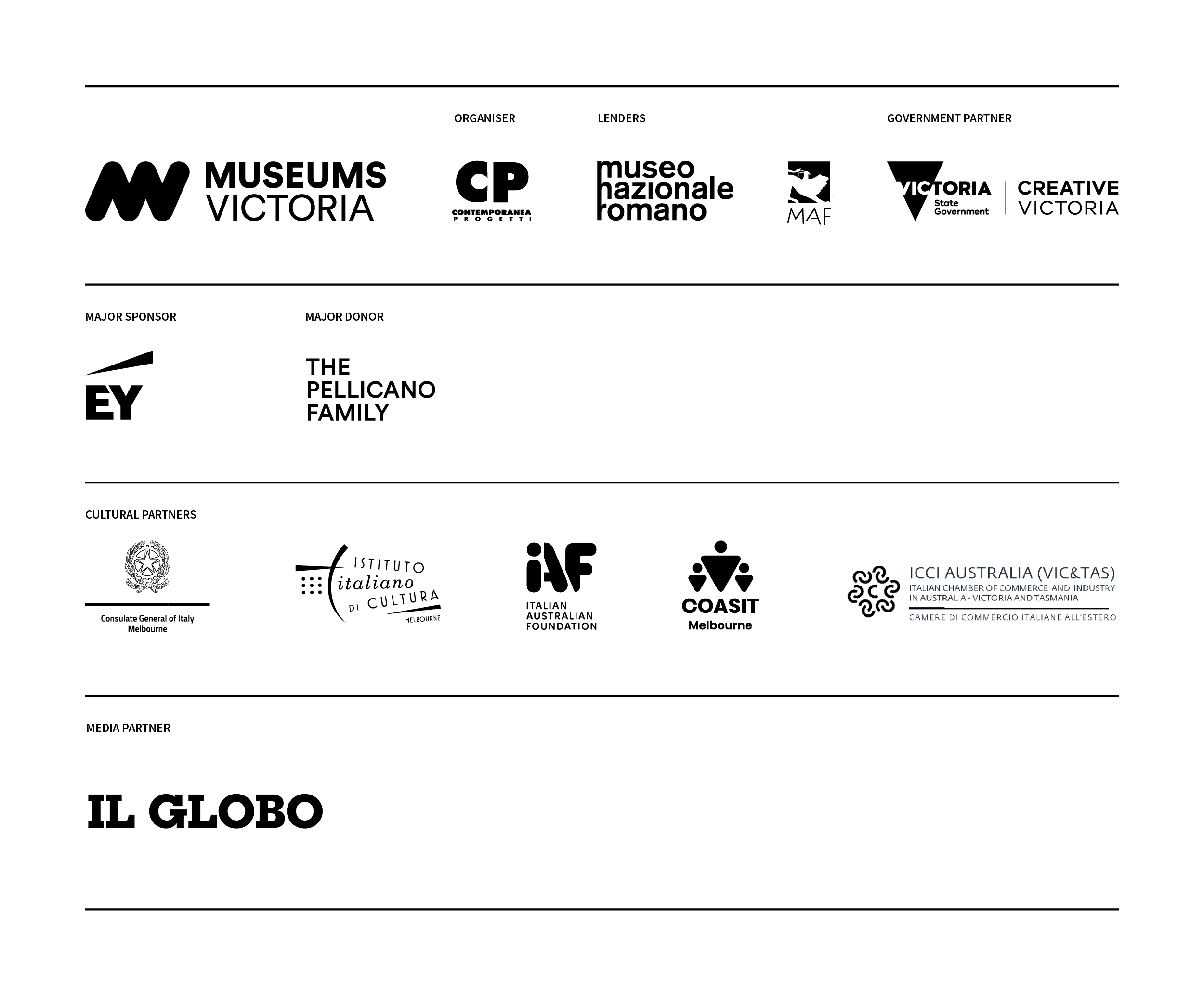 The exhibition, designed by Museums Victoria and developed in collaboration with Contemporanea Progetti and curators from Museo Nazionale Romano and Museo Archeologico Nazionale di Firenze, will draw on the extraordinary collections of two of Italy’s most prestigious museums for a never-before seen exhibition. Presented with the support of the Ministero della Cultura, Dipartimento per la valorizzazione del patrimonio culturale and Direzione regionale Musei nazionali Toscana.