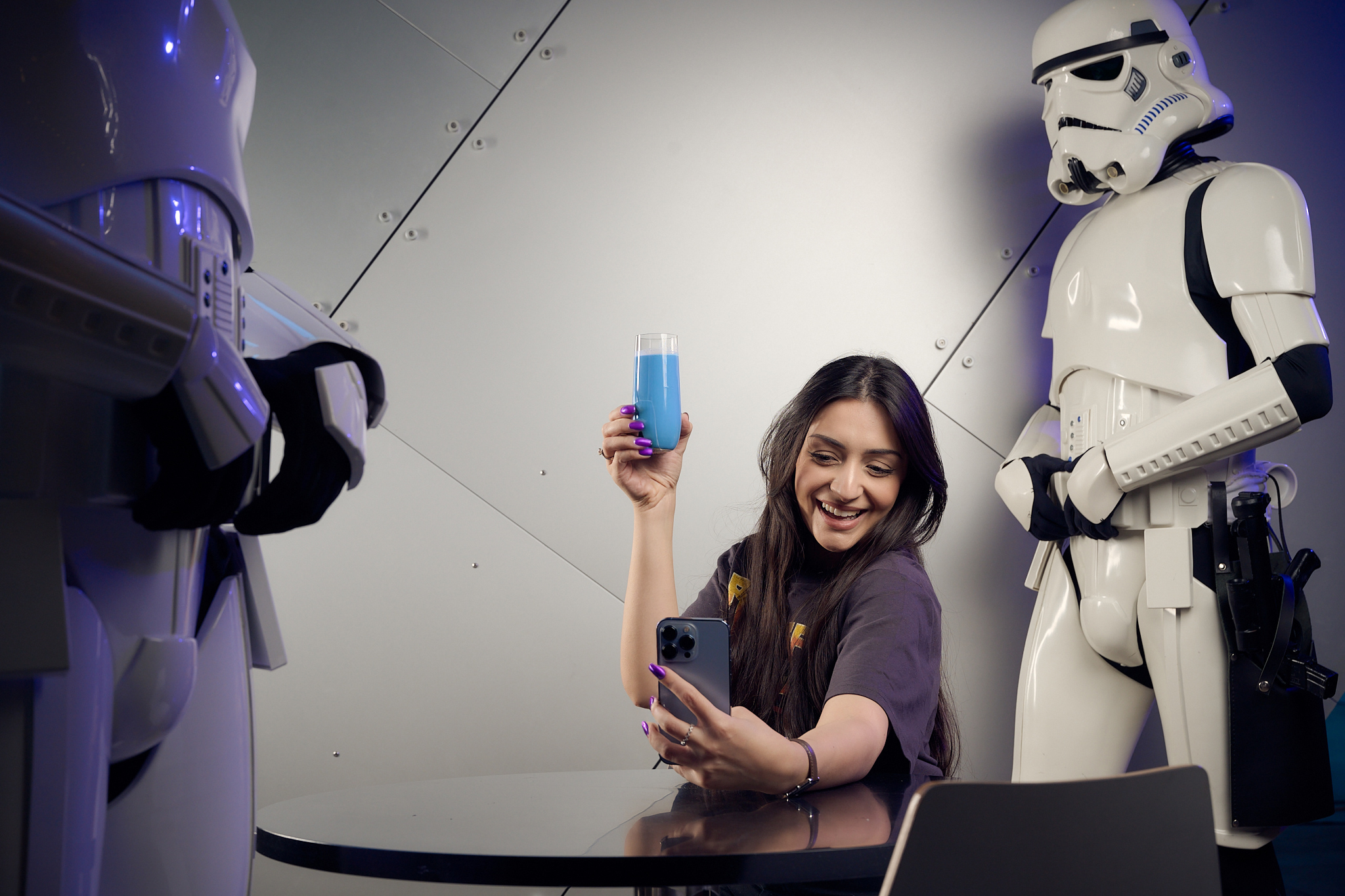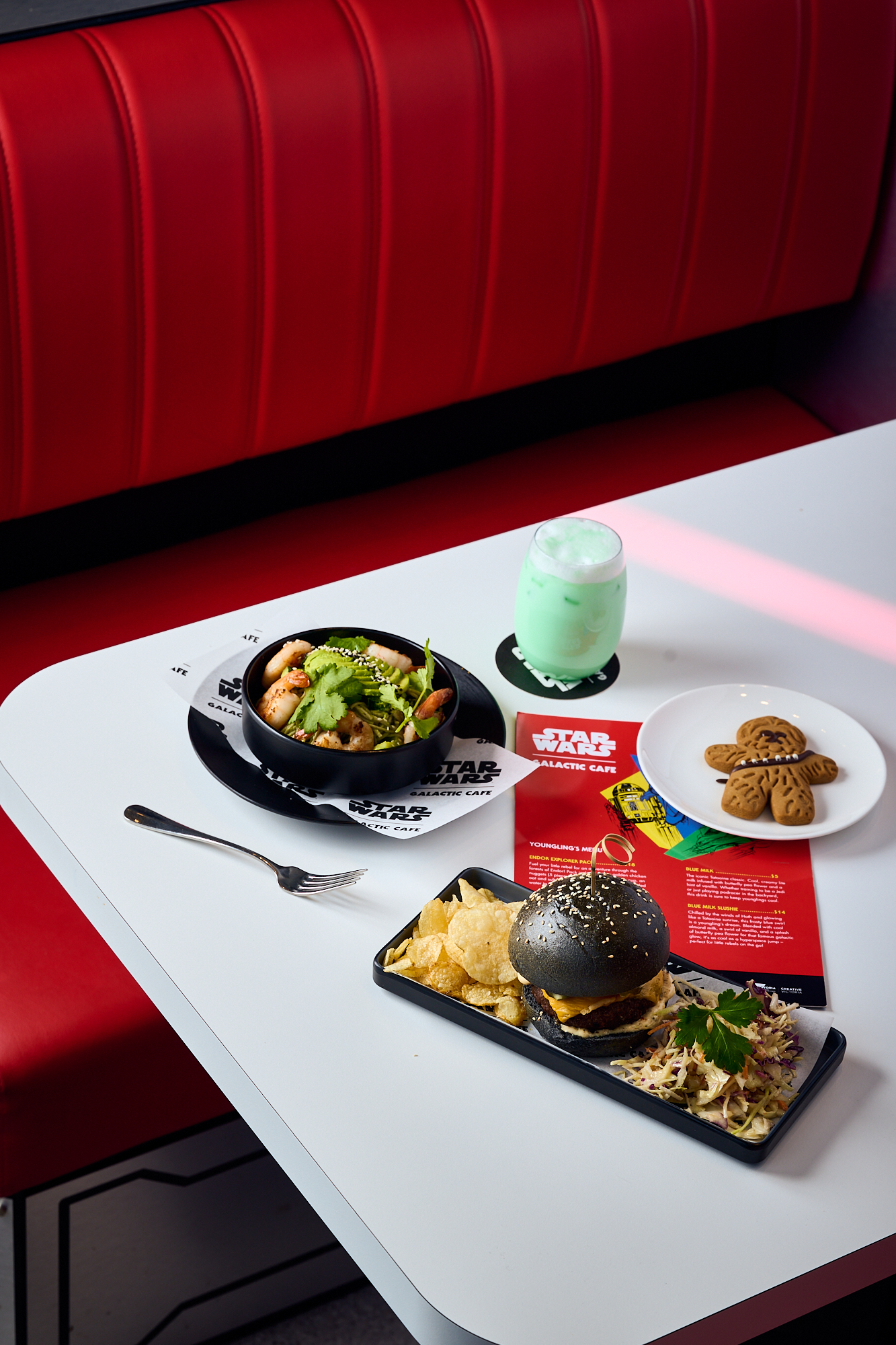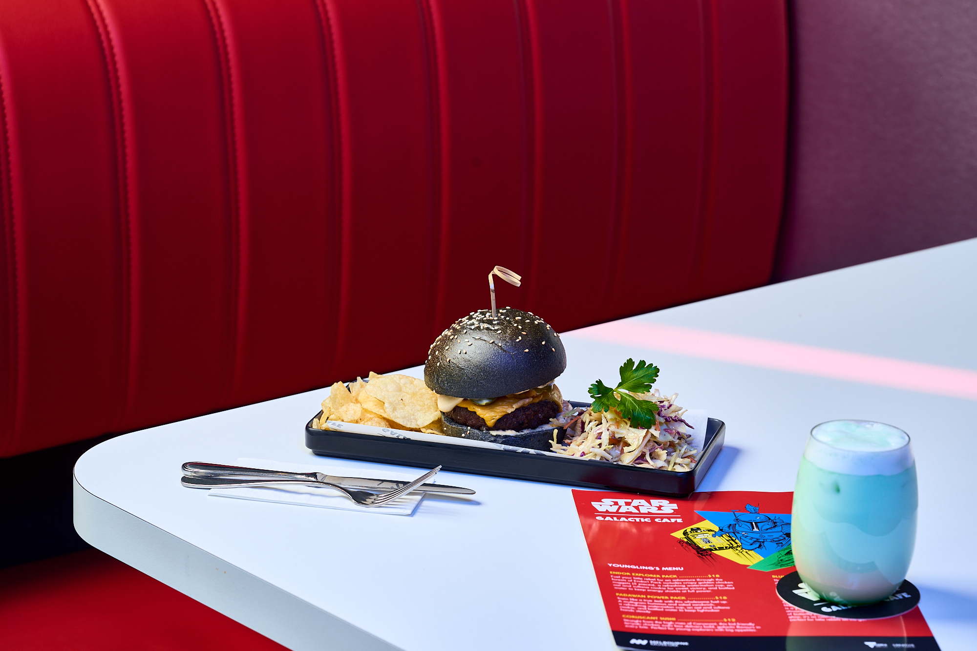 The Star Wars™ Galactic Cafe menu can be viewed on this cafe webpage. A selection of additional non-themed beverages and snacks are available to purchase at the cafe, via the QR codes on the tables.