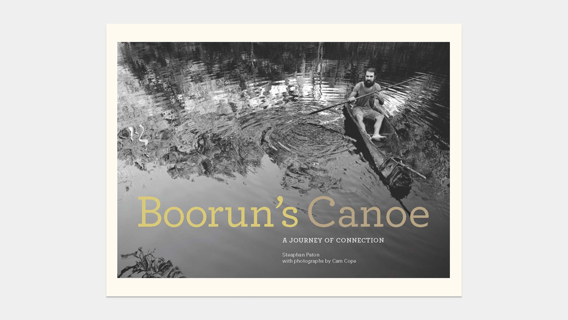 In Boorun's Canoe, Gunai artist Steaphan Paton, along with his brothers and cousins, are shown how to make a traditional bark canoe by their 'pop', Albert Mullett, Senior Gunai/Kurnai elder.